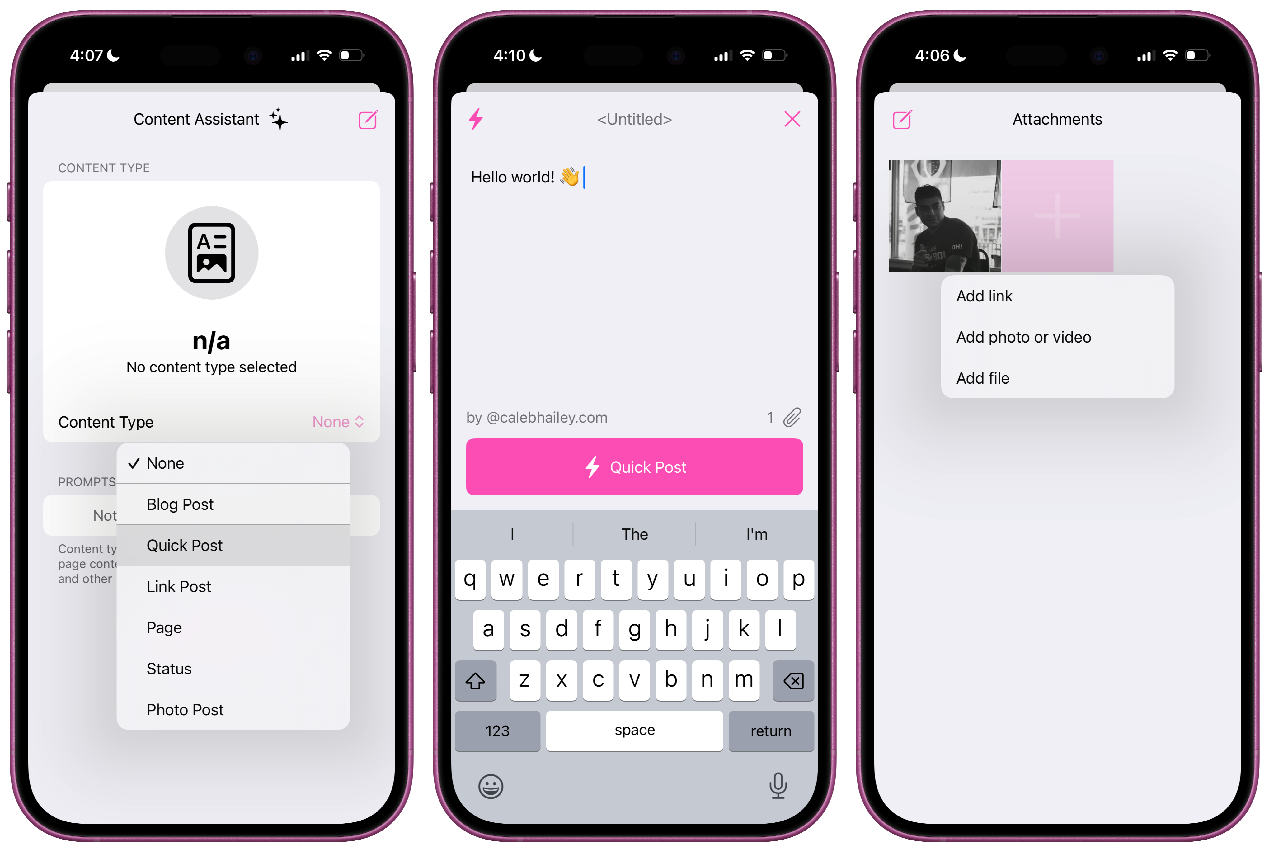 It should be easier to update your website than it is to post on social media. This was the original inspiration behind HyperTexting, and it's why we started by building our own website generator3 from the ground up, @hypertemplates.net. It's also why we will be adding support for @ghost.org, @wordpress.com, and @gohugo.io websites during an invite-only Composer TestFlight.