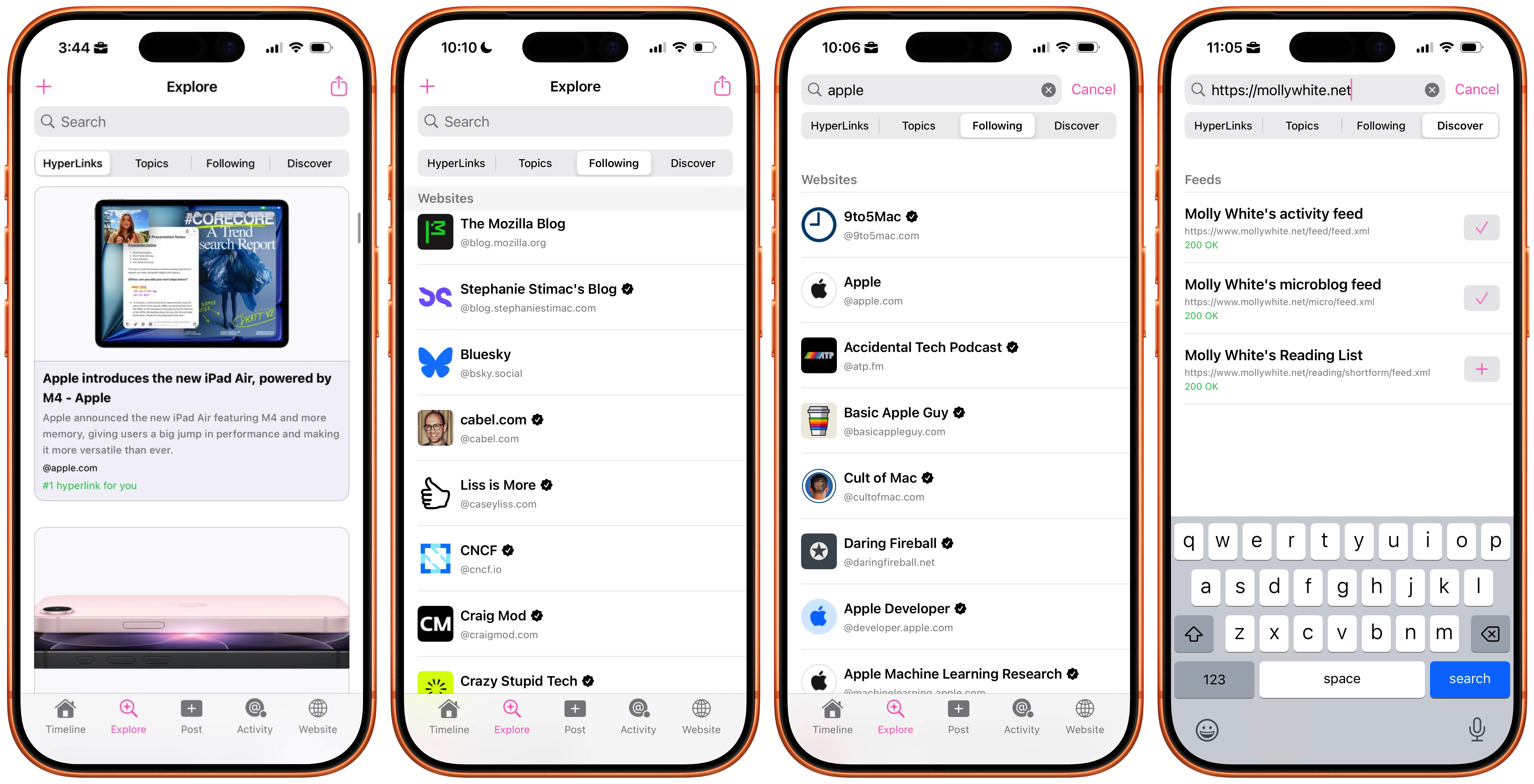 Explore trending topics for you with Hot Hyperlinks, browse followed feeds, and use the Feed Finder to discover new voices. The HyperTexting personalization features surface content that is relevant to your interests, because it comes from feeds you trust.