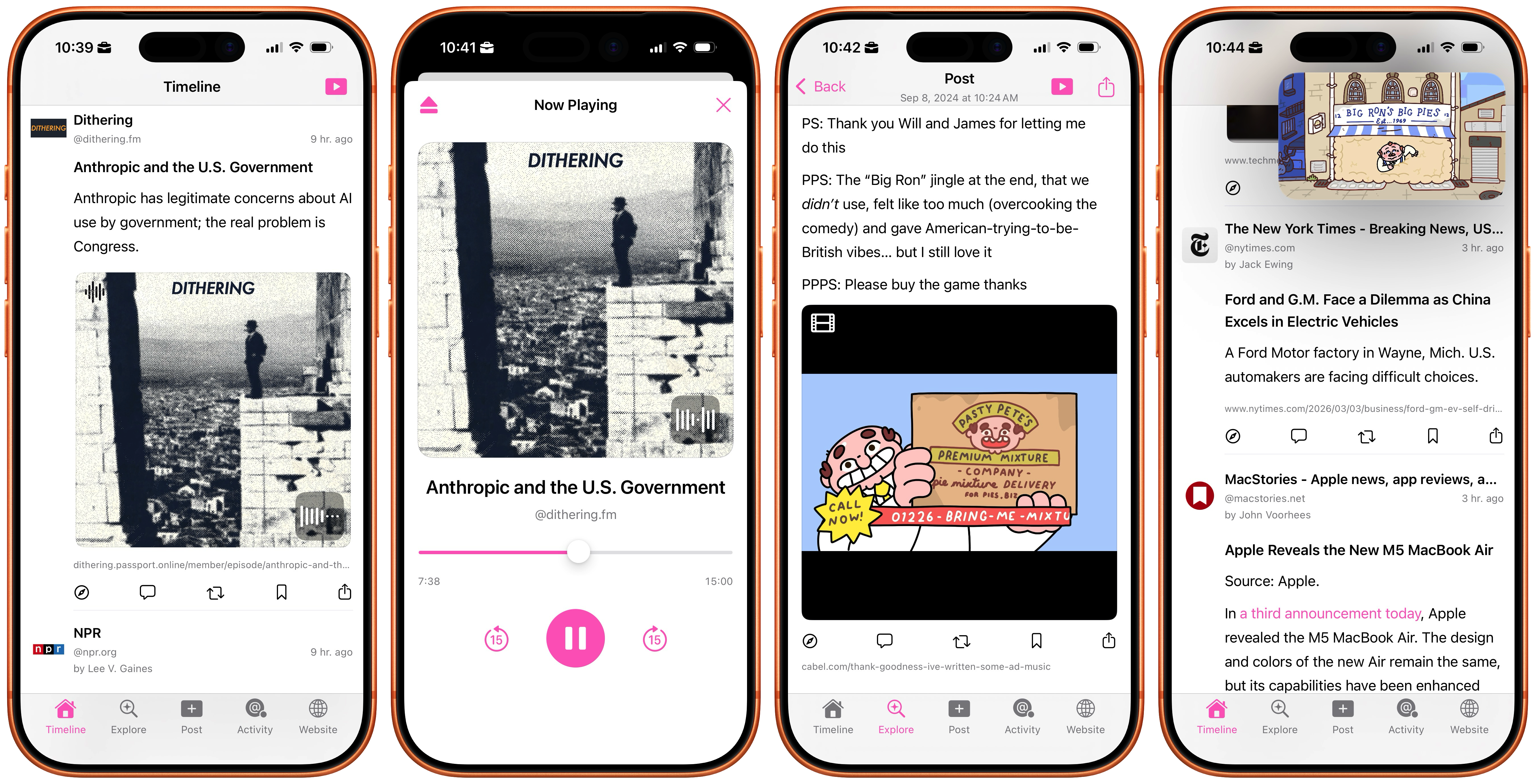 What is a feed? A feed is a page that contains a regularly updated stream of content. Your BFFs Instagram page is a feed, but so is the home page of the @nytimes.com. The primary way we consume feeds is in a "timeline" – a feed of feeds containing updates from all of the feeds we follow. Or at least it used to be. These days less than half of the content in our timelines is from feeds we follow. The platforms decided that we weren't spending enough time in their apps – and thus not viewing enough ads – so they filled our timelines with algorithmically recommended content that we never asked for. If we want to see updates from the feeds we follow we have to scroll past more ads, click bait, and AI-generated slop.